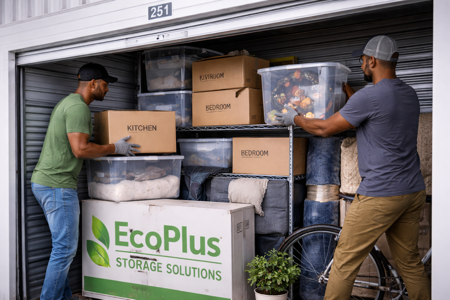 Secure storage for packed boxes and personal belongings.
